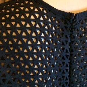 NWT Allen B body con, knee length little black dress made from heavy black scuba/neoprene material. The top bodice of the dress and triangles at the waist are made from laser cut neoprene fabric with a triangle lattice pattern. Sweetheart bodice line below the lattice work. cap sleeve and invisible zipper down the back. A good amount of stretch.