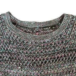 Allen B. By Allen Schwartz Black Rainbow Loose Knit High Low Sweater Sz Large.