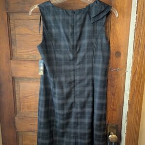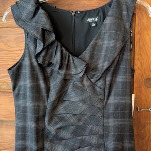 This elegant gray sheath dress by Allen B. By Allen Schwartz features a sophisticated ruched design and a chic cowl neckline, perfect for work or cocktail occasions. The sleeveless style and midi length offer a flattering silhouette, making it a versatile addition to your wardrobe.