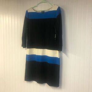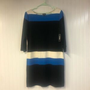 Allen B. Colorblock Dress with Blue and Black Stripes 3/4 Sleeve XL NWT