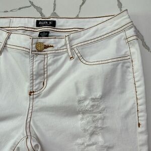 Allen B. Schwartz | White Distressed Orange Stitching Women’s Denim Jeans