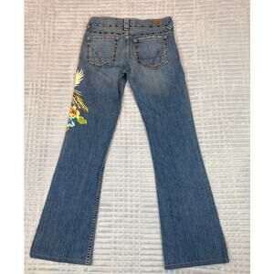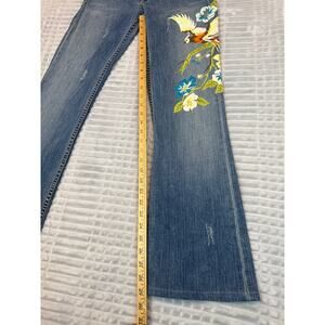 Allen B Women's Embroidered Bird Floral Festival Studded Flare Jeans Size 28
