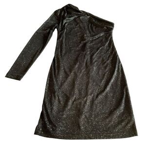 Cocktail Dress by Allen B by Allen Schwartz one-sleeve cocktail Asymmetrical neckline Black Sparkle Glitter fabric Women size XS