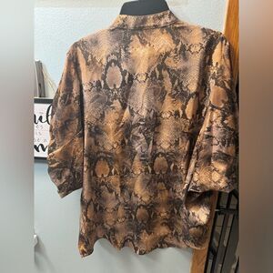 Allen B by Allen Schwartz Brown Snakeskin Button Down Blouse Size Large