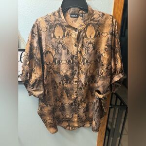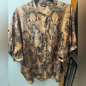 Allen B Brown Snakeskin Button Down Blouse Size Large