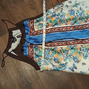 Details about the item: '90s 2000 style handkerchief asymmetrical cut floral butterfly flowy spaghetti strap halter cut dress MIDI double lined