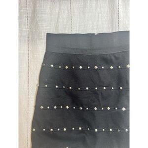 Allen B. embellished black Stretchy Skirt back zip Medium Y2K Goth 90s. M3