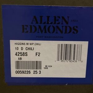 Worn once, great condition, real leather Allen Edmonds men’s size 10 D shoes Higgins M WP, Chili