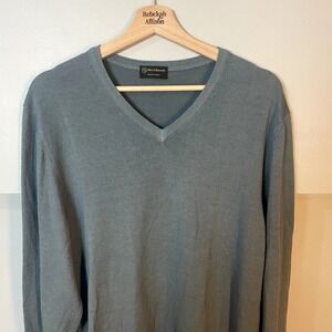 Allen Edmonds 100% Merino Wool Blue V-Neck Formal Designer Sweater Men's XL EUC