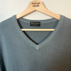 Beautiful 100% extra fine merino wool v-neck sweater from Allen Edmunds in a men's size XL. Gently used, great condition, no flaws.