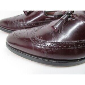Allen Edmonds Berwick Mens Burgundy Tasseled Wingtip Loafers Size US 10 D Pre Owned. Please View All Photos For Wear And Overall Condition. Use The Zoom Feature For A Closer Look. Pre Owned. Please Notice There Is Some Creasing. The Shoe Trees Are Included With The Purchase To Help Protect The Shoes.