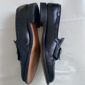 Elegant black loafers with tassel detail. Sleek and stylish design. Perfect for formal occasions.
