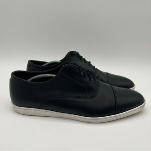 Sleek black leather oxfords. Classic design with lace-up closure. Perfect for formal occasions.