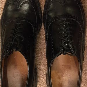 These shoes are lightly worn, well maintained and in accumulate condition. i have included a genuine pair of allen edmonds shoe trees along with the original box. they are 9e (wide) with leather soles.