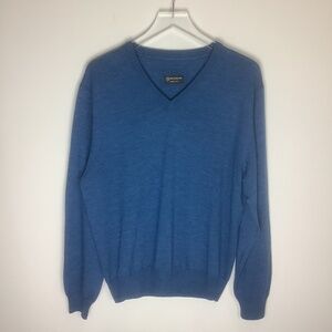 Allen Edmonds Extrafine Merino Wool Blue V Neck Sweater. Size Large. Made in Italy. Great pre-owned condition, no rips, tears or stains, very light signs of pilling expected with this kind of fabric - see photos for condition!