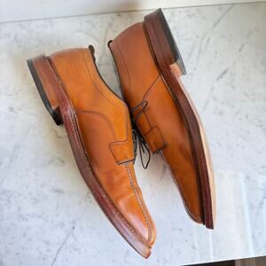 Condition: Excellent pre-owned condition—uppers show minimal creasing and polish nicely; soles show light wear (see photos). Slight discoloration, darker brown, in a few spots (see photos). Shoes have been cleaned and polished. Shoe trees are not included.