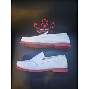 Allen Edmonds Mens 10.5D Cream White Suede Penny Loafers Stanton Made In USA