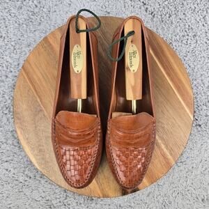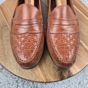 Allen Edmonds Mens 9.5D Barbados Brown Leather Woven Casual Daily Penny Loafer