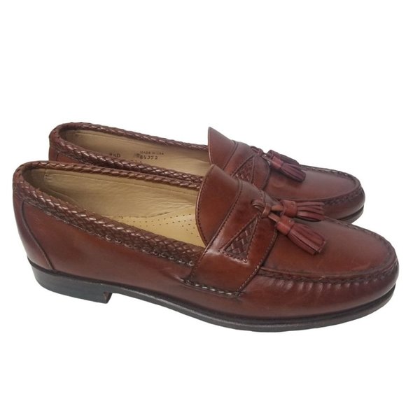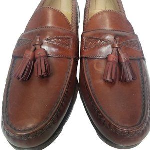 Allen Edmonds Mens 9.5D Brown Tanned Leather Slip On Tassel Maxfield Loafers