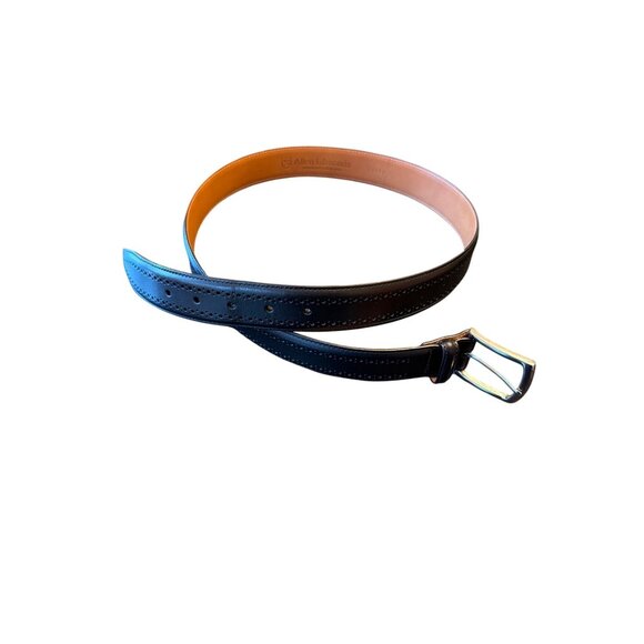Allen Edmonds Mens Leather Belt Black Size 38 With Silver Buckle