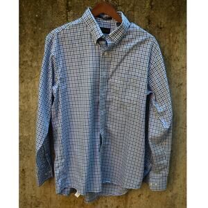 Allen Edmonds Men’s Long Sleeve Button-Down Shirt – Blue Check, Cotton, Size L