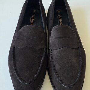 These Allen Edmonds Mercer Street Brown Suede Penny loafers are in excellent condition, but have a defect around the heel apron (mostly on the right) which was received from Allen Edmonds in this condition ( received a huge discount off of the $495 list price). Due to that I am selling these at an even larger discount. See photos for details of the overall shoe condition plus the effected areas.