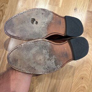 AE Park Avenues in need of some work. Leather on sides is a bit discolored and the soles are in need of re-soling.
