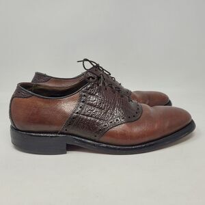 Allen Edmonds Shoes Men 9C Brown Wildebeest Leather Saddle Polo Dress USA Exotic