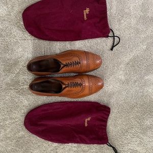 Shoes have been worn a handful of times but are in very good used condition with lots of life left. Some wear on the right shoe toe (see pictures). Shoes have recently been cleaned and polished. Shoe bags included. Consider bundling with AE shoe trees also for sale!