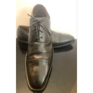 Elevate your style with these classic black leather dress shoes. Front lace-up Perfect for formal occasions, these shoes offer both comfort and sophistication. Excellent Preowned Condition.