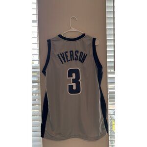 The product is an authentic Allen Iverson 1995 Georgetown Hoyas basketball jersey in men's size large, featuring the official team colors of gray. This officially licensed jersey is a must-have for fans of the National Basketball Association (NBA) and the Georgetown Hoyas. Represent your favorite player and team with this classic piece of fan apparel, perfect for wearing during the regular season games or as a stylish casual outfit. Show your support for Allen Iverson and the Georgetown Hoyas with this high-quality jersey.