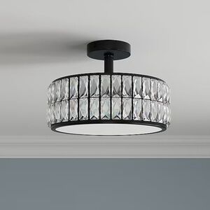 Illuminate your space with the Allen + Roth LED ceiling fixture. Featuring a sleek black finish and elegant glass crystals, this fixture adds a touch of sophistication to any room.