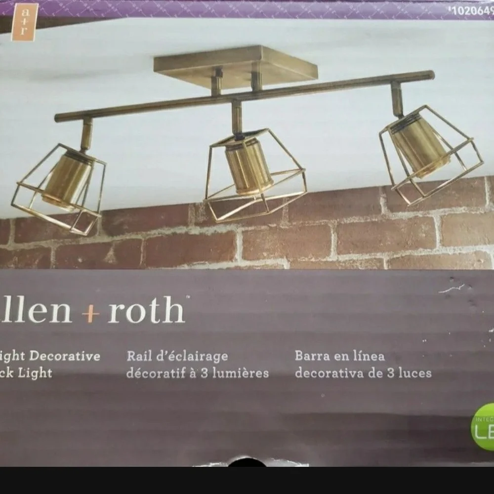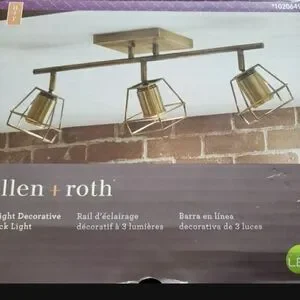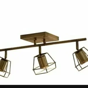 Stylish gold track light with three decorative fixtures. Perfect for modern interiors.