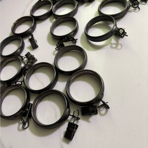 Set of metal curtain rings with attached clips. Perfect for hanging curtains easily. Allen + Roth