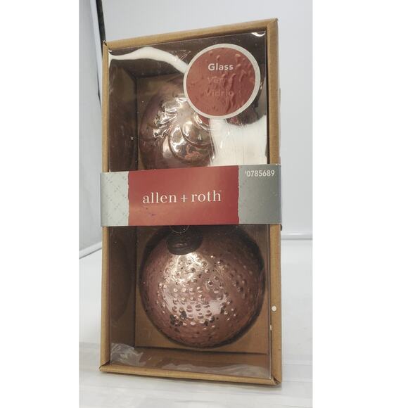 Allen + Roth Vintage Inspired Ornaments, 2pk Rose Gold & Silver Mercury Glass, IOB 0785689