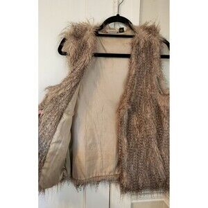 Allen Schwartz Allen B. Faux Fur Vest Brown Cream Womens Size Medium