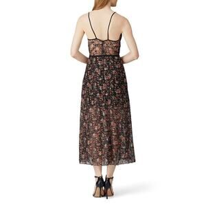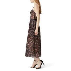 This Allen Schwartz midi dress is cut from delicate ditsy print lace with a bustier bodice and side pockets. With just the right amount of bottom flare, this dress sways beautifully with movement creating a chic seasonless ensemble.