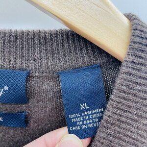 Allen Solly Mens Size XL 100% Cashmere V Neck Long Sleeve Sweater in Brown