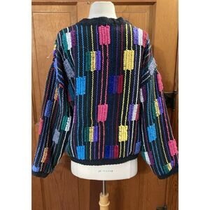 Allen Wah 3D Sweater Vtg Women’s Sz M Colorful Woven Cotton Blend Textured 80s