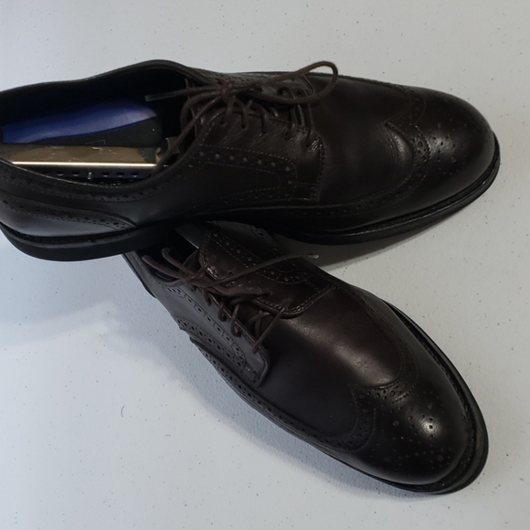 Allen edmund road warriors dark brown road warrior oxfords showing wear on one heel and toe of one shoe is scratched please see photos. Very comfortable pair of nice shoes. Size 10 d
