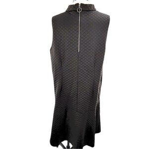· high neck, sleeveless, drop-waist, exposed zipper back