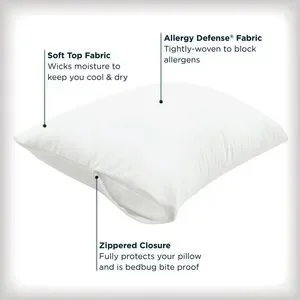 From the #1 selling allergy bedding brand AllerEase, the Maximum Zippered Pillow Protector delivers premium comfort and protection for a truly clean bed. It features soft moisture-wicking fabric that helps to keep you cool & dry all night long. Our expertly designed Allergy Defense Fabric® even prevents unhealthy household allergens -- like dust mites, pollen, and pet dander -- from collecting in your pillow. Antimicrobial product protection keeps your protector fresh by inhibiting the growth of odor-causing bacteria, and it can be washed in hot water to remove dirt, bacteria, and surface allergens. Maximum will keep your pillow protected for a healthy night's sleep and is backed by the AllerEase Lifetime Warranty.