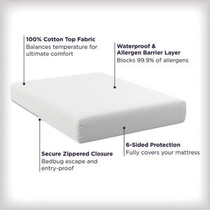 • Blocks 99.9% of household allergens -- like dust mites, pollen, and pet dander -- from collecting in your mattress