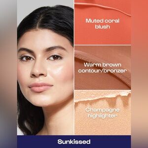 New in box, never used. Alleyoop Stack the Odds Refillable Blush, Bronzer & Highlighter Trio in Sunkissed (Muted coral blush, warm contour/bronzer, champagne highlighter).