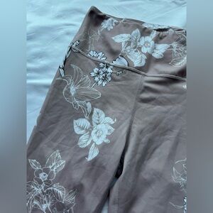 Allfenix Blush Pink Floral Leggings. Soft blush pink color with white floral pattern. High waisted and thick waistband. Hidden interior pocket on the back. Like new. Size Small.