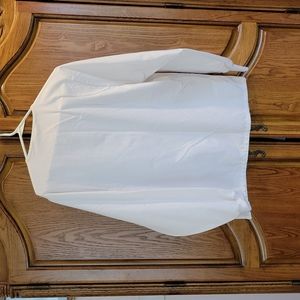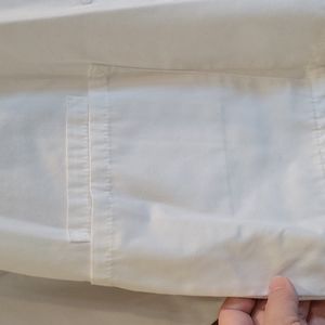 AllHeart Scrub Jacket in White. Size Small. Snap Front. Elastic Wristbands. Round Neck. 3 Front Pockets. 66% Polyester, 35% Cotton.