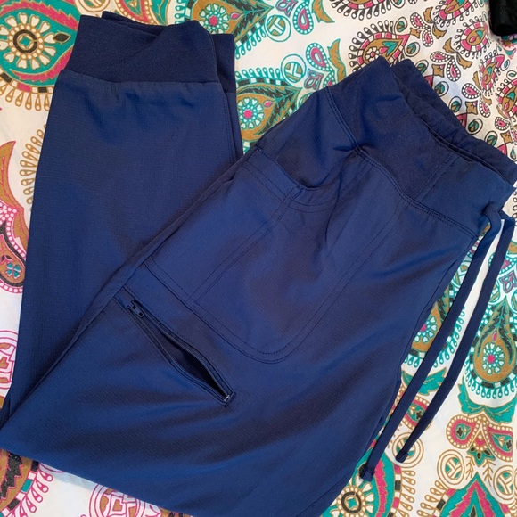 Navy jogger style scrub pants by Allheart. Work a few times. Lightweight material. Size medium petite.