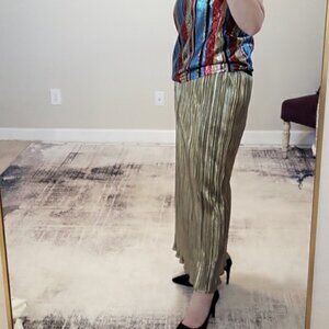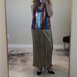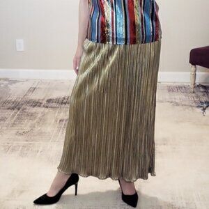 Features: Alli Petites Gold Metallic Pleated Maxi Skirt Vintage