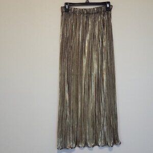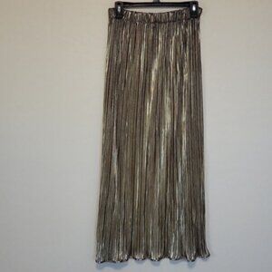 Alli Petites Of California Gold Metallic Pleated Maxi Skirt Golden Size Medium