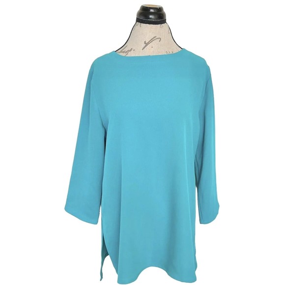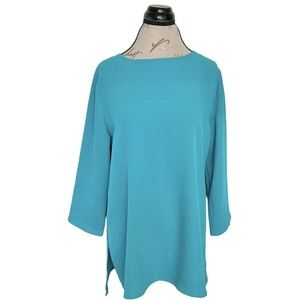 Allie Coosh Womens Blouse Green Turquoise Sz Small Spring Tunic Lagenlook Easter